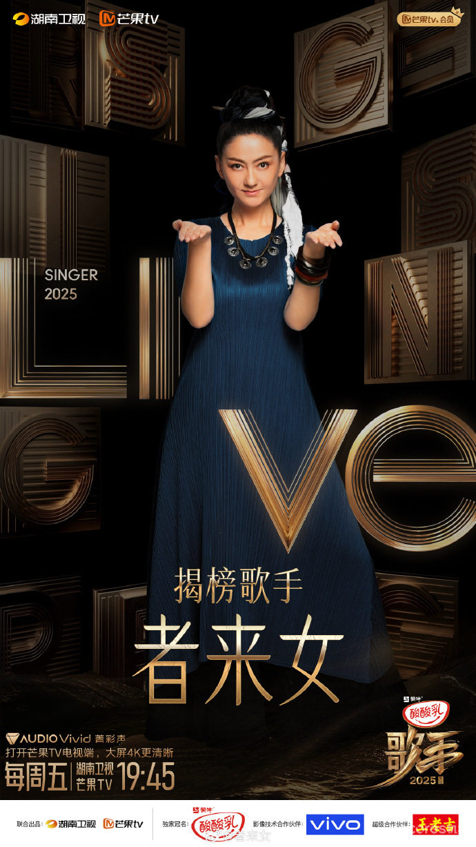 我们衷心期望,者来女踏着空灵野性的步伐而来,在《歌手2025》以人声为器,开启一场青色的声觉奇旅。
